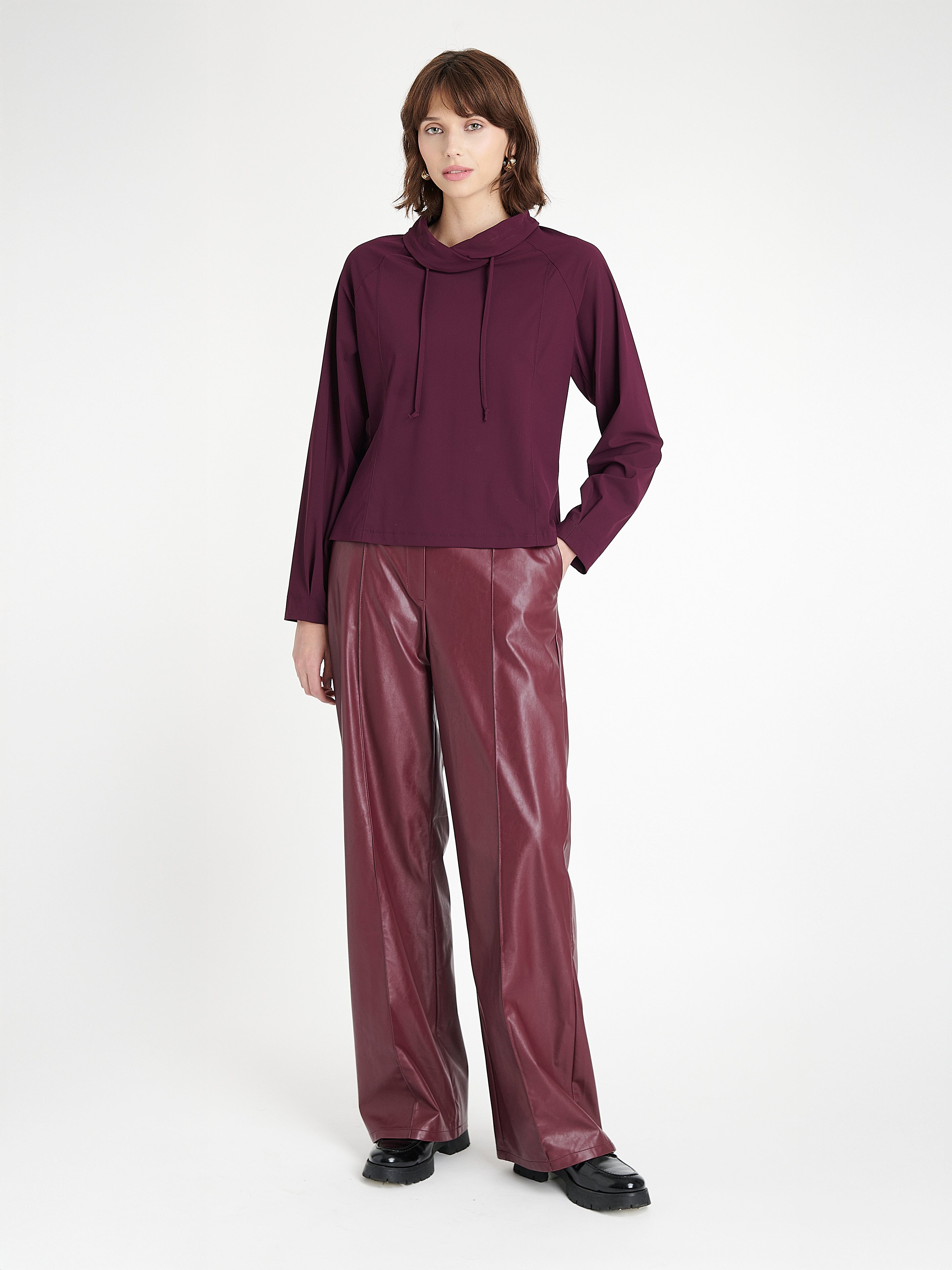 Florian Eco-Leather Top: Das Florian Eco-Leather Top kombiniert moderne Raffinesse mit nachhaltigem Design. Es ist aus luxuriösem Öko-Leder gefertigt und hat eine kastige Silhouette, kurze Ärmel und einen schicken hohen Ausschnitt mit Bindedetails. Die glänzende Textur verleiht ihm einen kühnen und doch raffinierten Touch und macht es zu einer perfekten Wahl für moderne, stilvolle Looks.