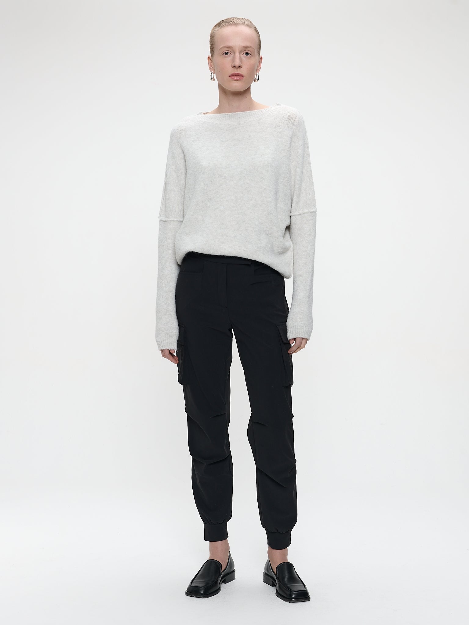 Seine lockere Passform und die strukturierte Strickart sorgen für Komfort und visuelle Tiefe – perfekt für einen lässig-eleganten Look.