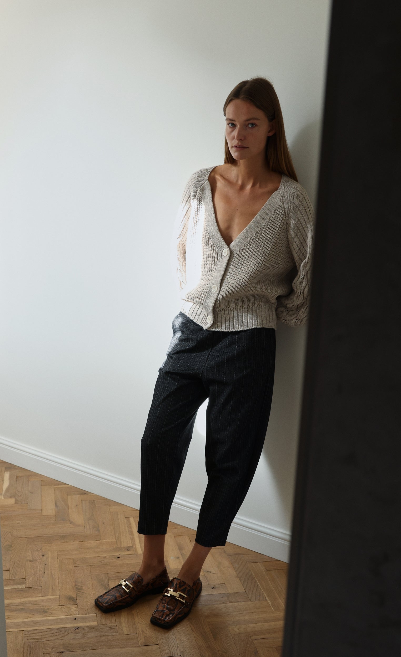 Die Strickjacke 1137 ist ein auffälliges Layering-Piece aus der AW25-Kollektion, das jedem Outfit Struktur und Charakter verleiht.
