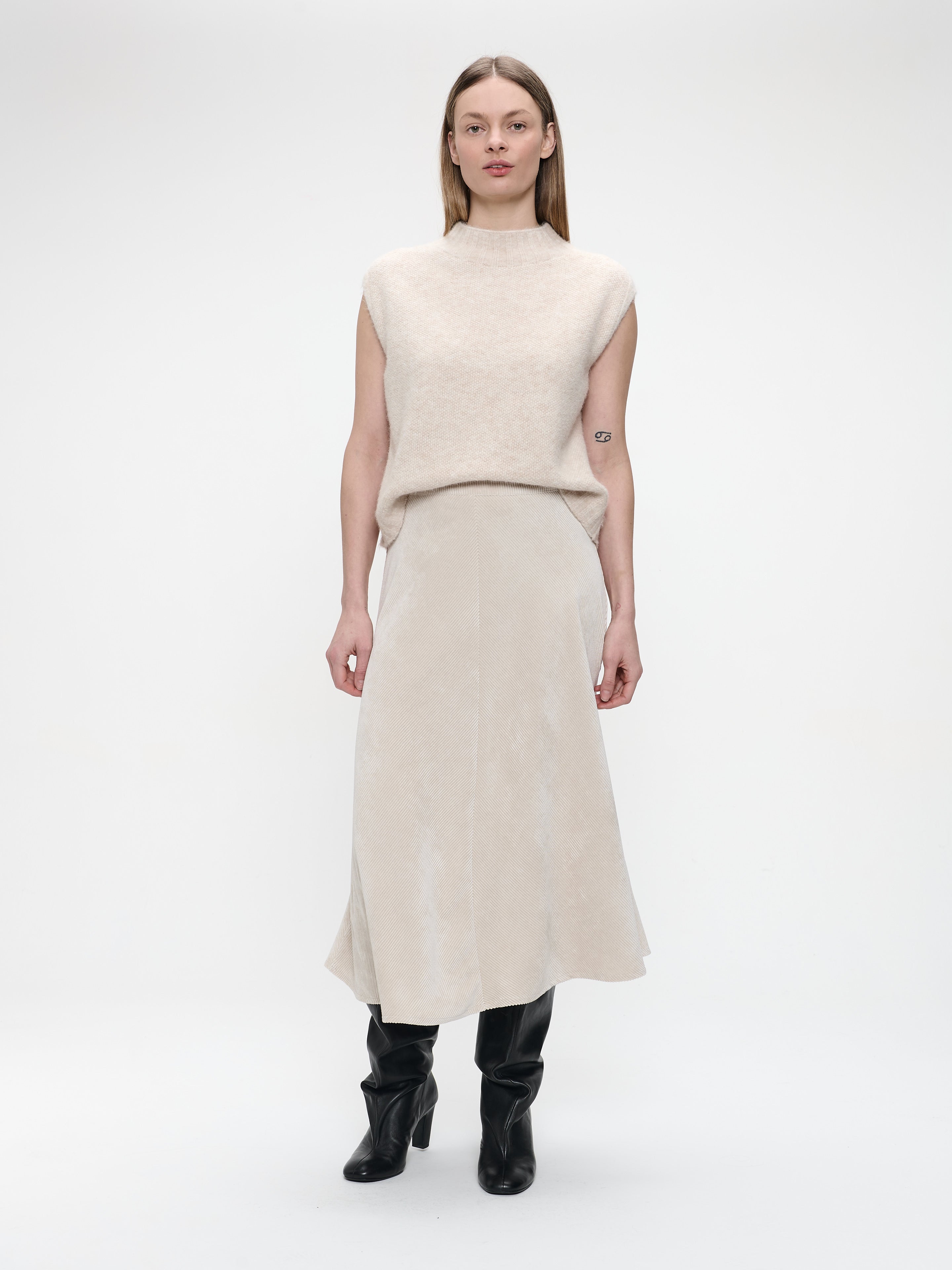 Alpaca Vest H24179 ist das perfekte Layering-Piece für Übergangswetter. Gefertigt aus einer luxuriösen Alpakamischung, bietet diese ärmellose Strickweste gleichermaßen Weichheit und Struktur. Der hohe Halsausschnitt und die lockere Passform machen sie ideal über Hemden, Kleider oder leichte Tops für einen eleganten und bequemen Look.