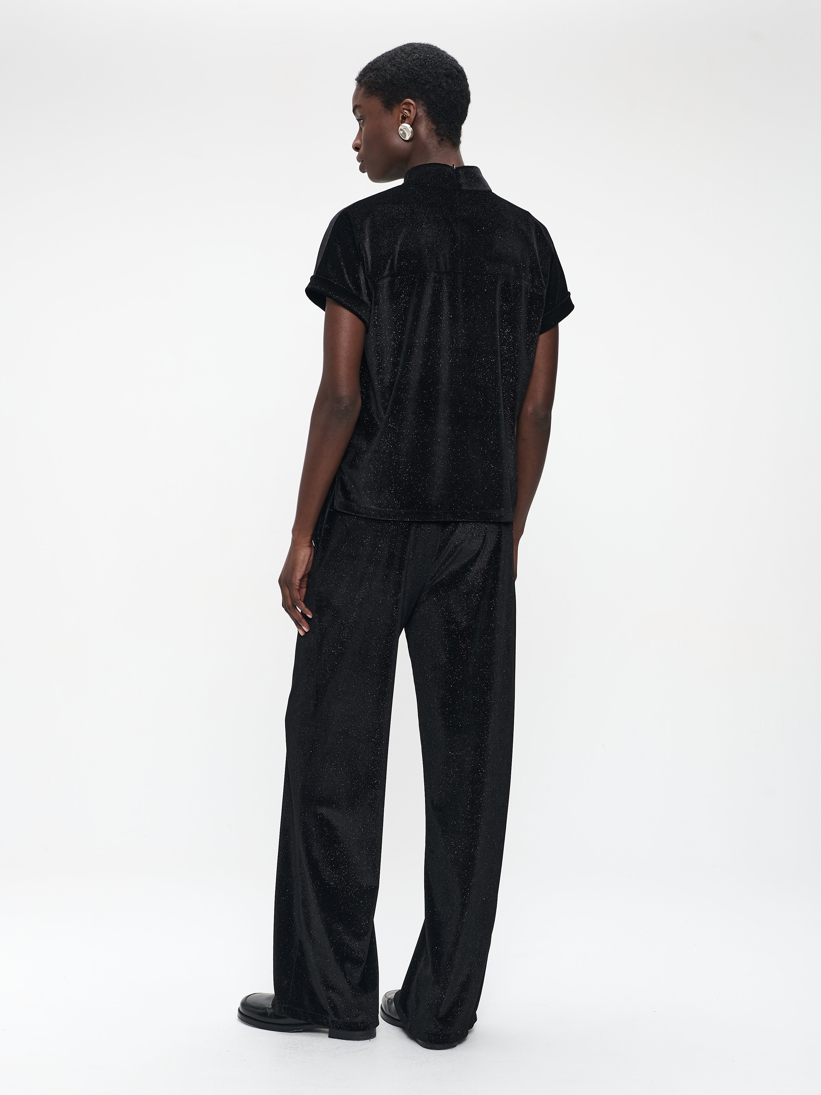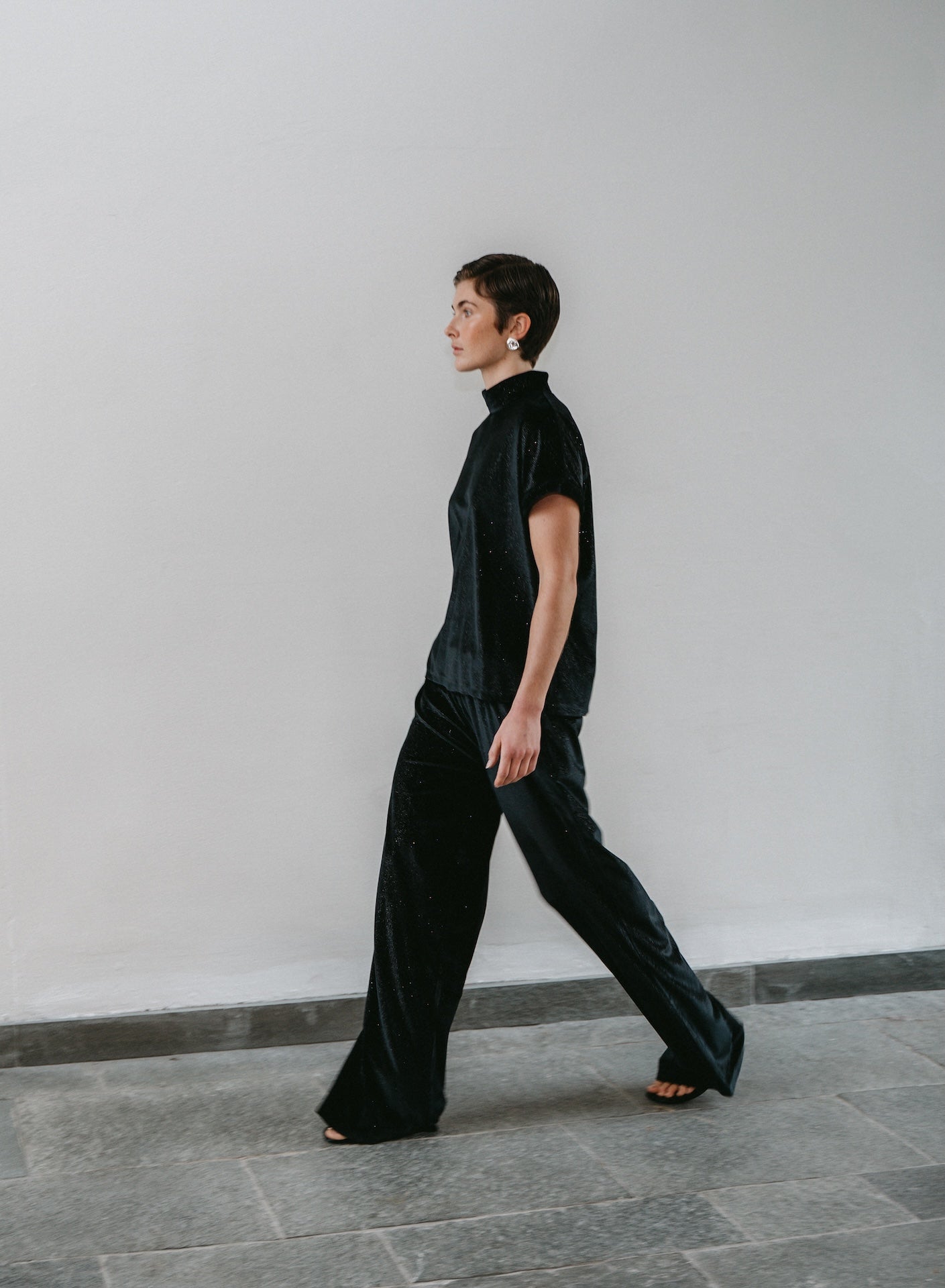 Le pantalon Simone Velvet allie élégance décontractée et facilité moderne. Confectionné dans un tissu à texture veloutée, il apporte une touche de brillance subtile à toutes vos tenues. Sa coupe large et sa taille élastique garantissent confort et raffinement — parfait pour un look chic au quotidien ou une soirée habillée.
