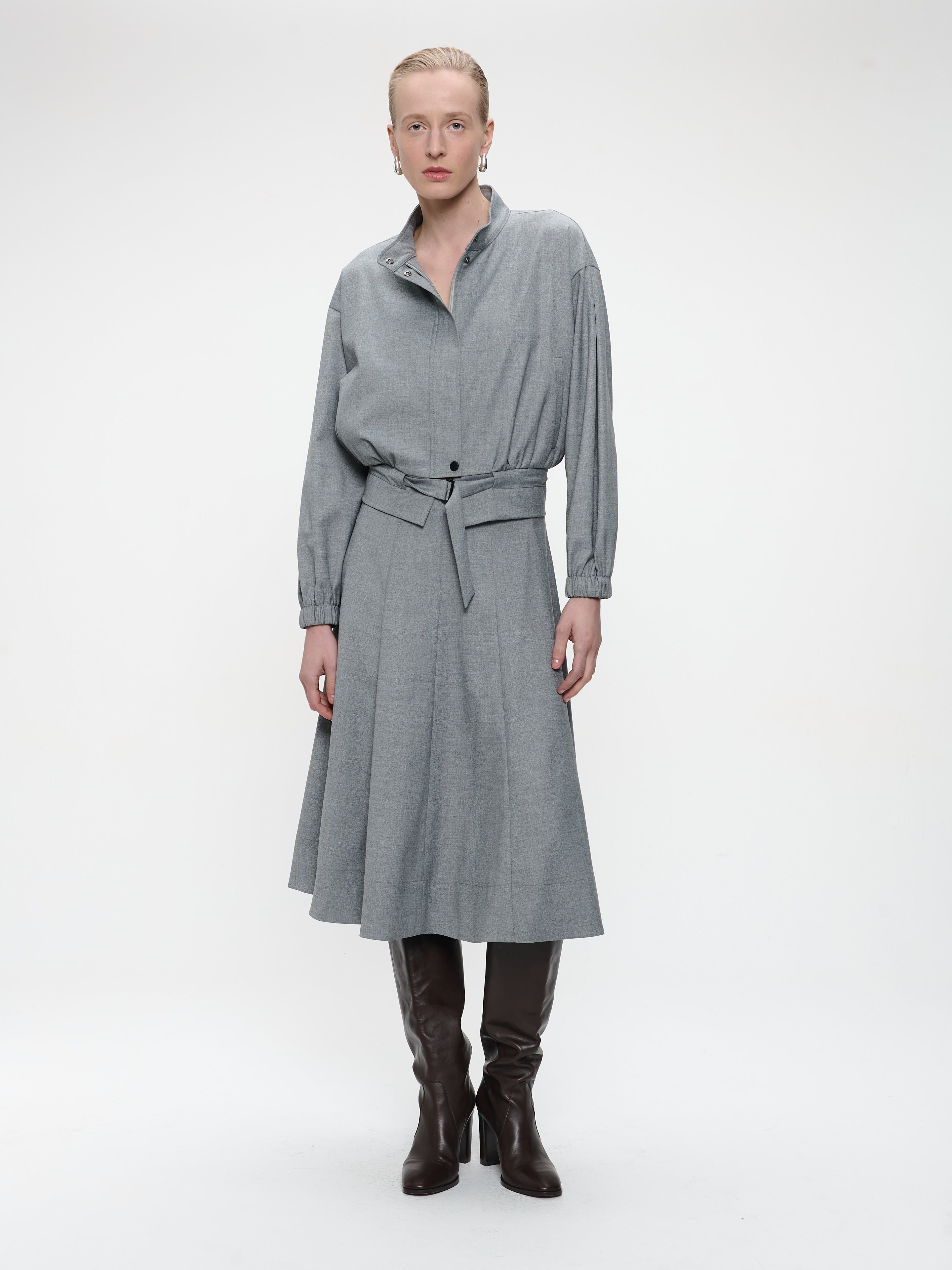 Confectionnée dans un mélange lisse et légèrement extensible de polyester, viscose et élasthanne, elle se distingue par sa souplesse et sa structure élégante. Dotée d’un col chemise classique, d’une fermeture boutonnée dissimulée et d’une ceinture amovible, elle peut se porter ouverte pour une allure décontractée ou ceinturée pour une silhouette plus marquée. Une couche raffinée pour le travail ou les sorties.