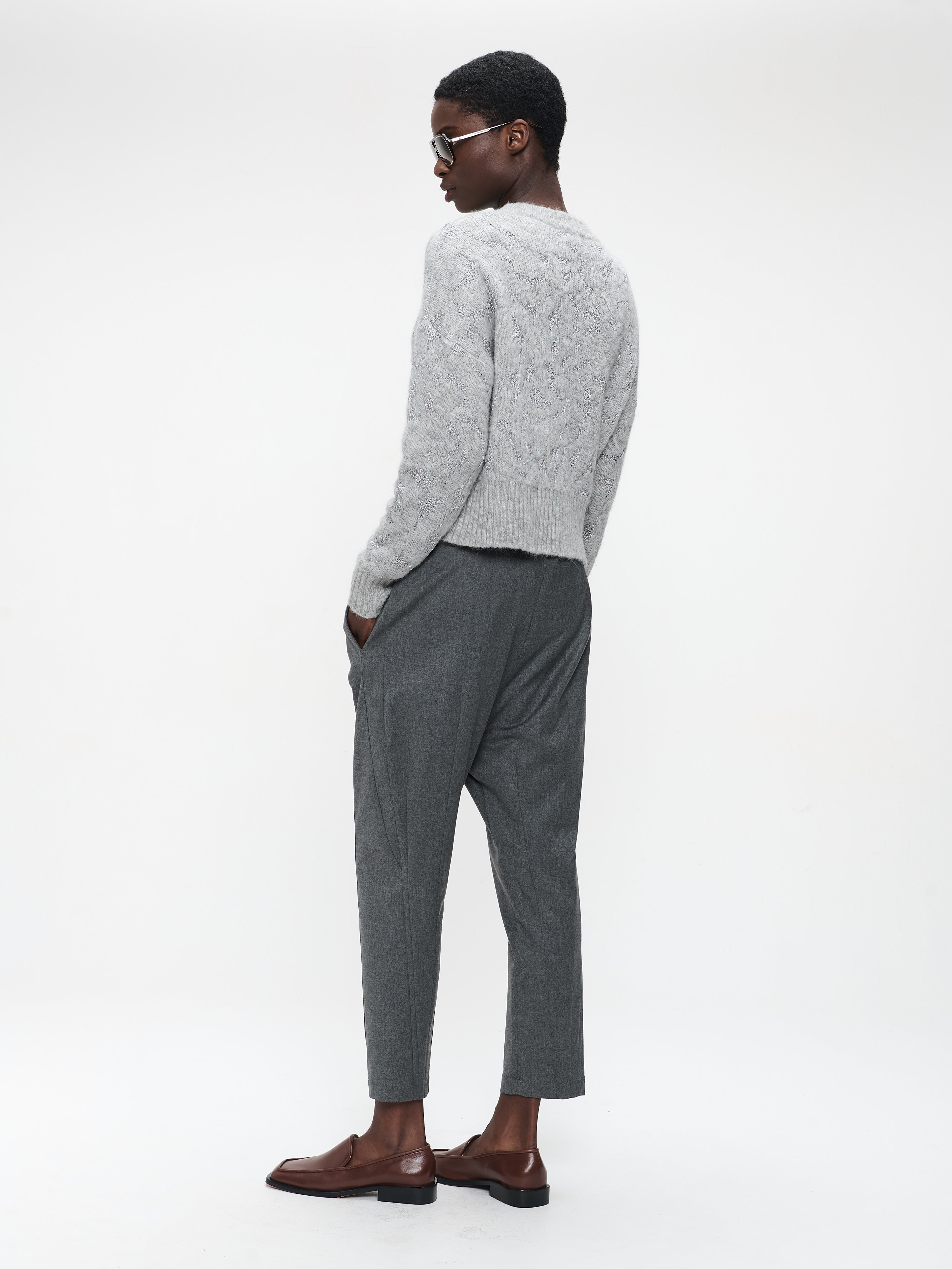 Affichez un style affirmé cette saison avec le pull H25171 – doux, brillant et soigneusement confectionné. Doté d’un motif en maille unique et d’un léger effet scintillant, ce modèle apporte une touche d’élégance à votre garde-robe automne/hiver. Le mélange d’alpaga, de laine et de fibres synthétiques garantit chaleur et confort, tandis que sa coupe décontractée permet de l’associer facilement à un pantalon, une jupe ou un short.
