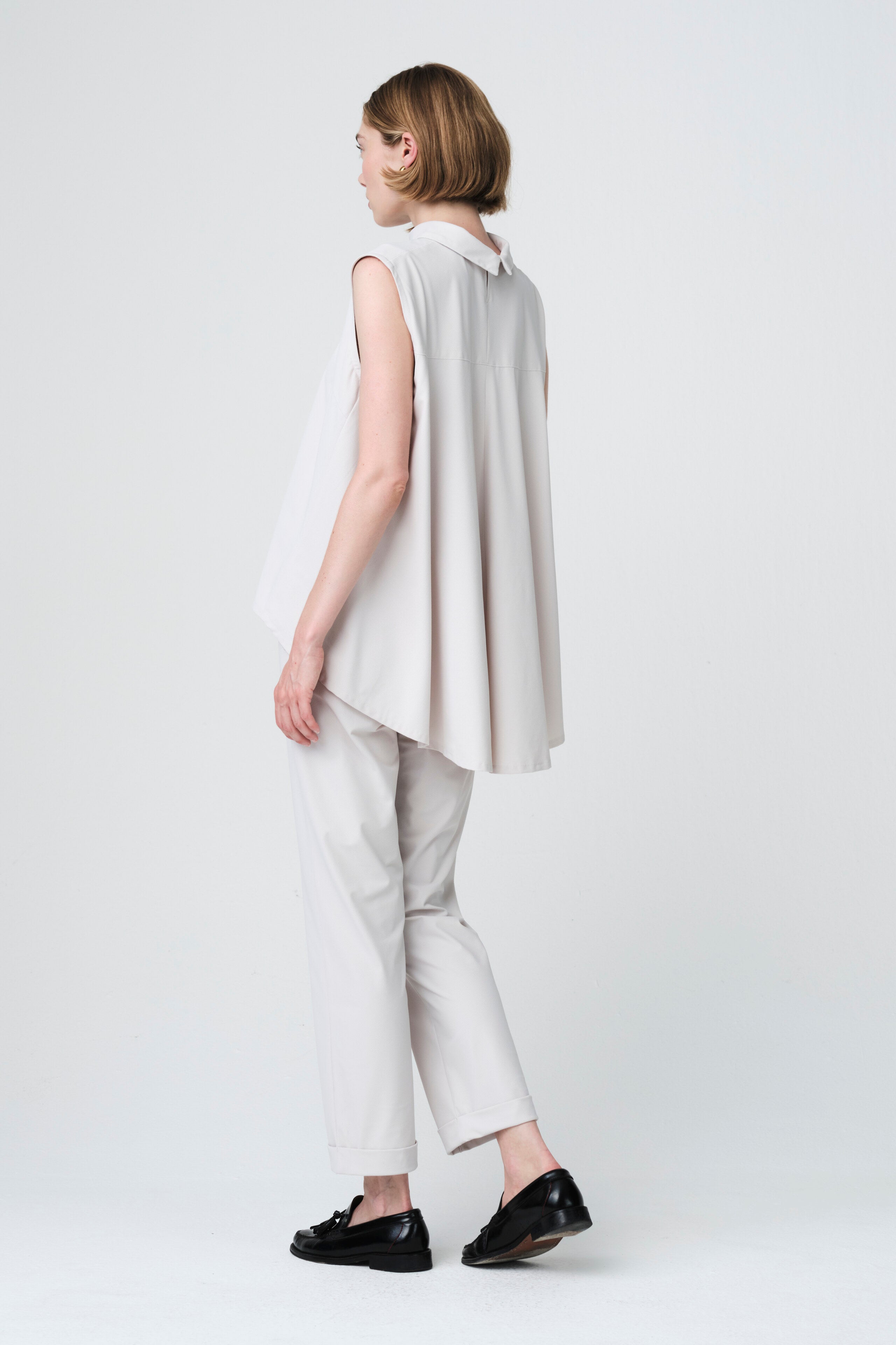 I pantaloni IrenaN presentano una silhouette moderna e pulita, con una struttura leggermente definita. Realizzati nel nostro jersey tecnico, uniscono un look raffinato a un comfort totale. Il taglio regular, la gamba affusolata e la texture morbida li rendono perfetti sia per l’uso quotidiano sia per outfit più eleganti. L’orlo risvoltato aggiunge un tocco contemporaneo, mentre il tessuto fluido garantisce libertà di movimento.