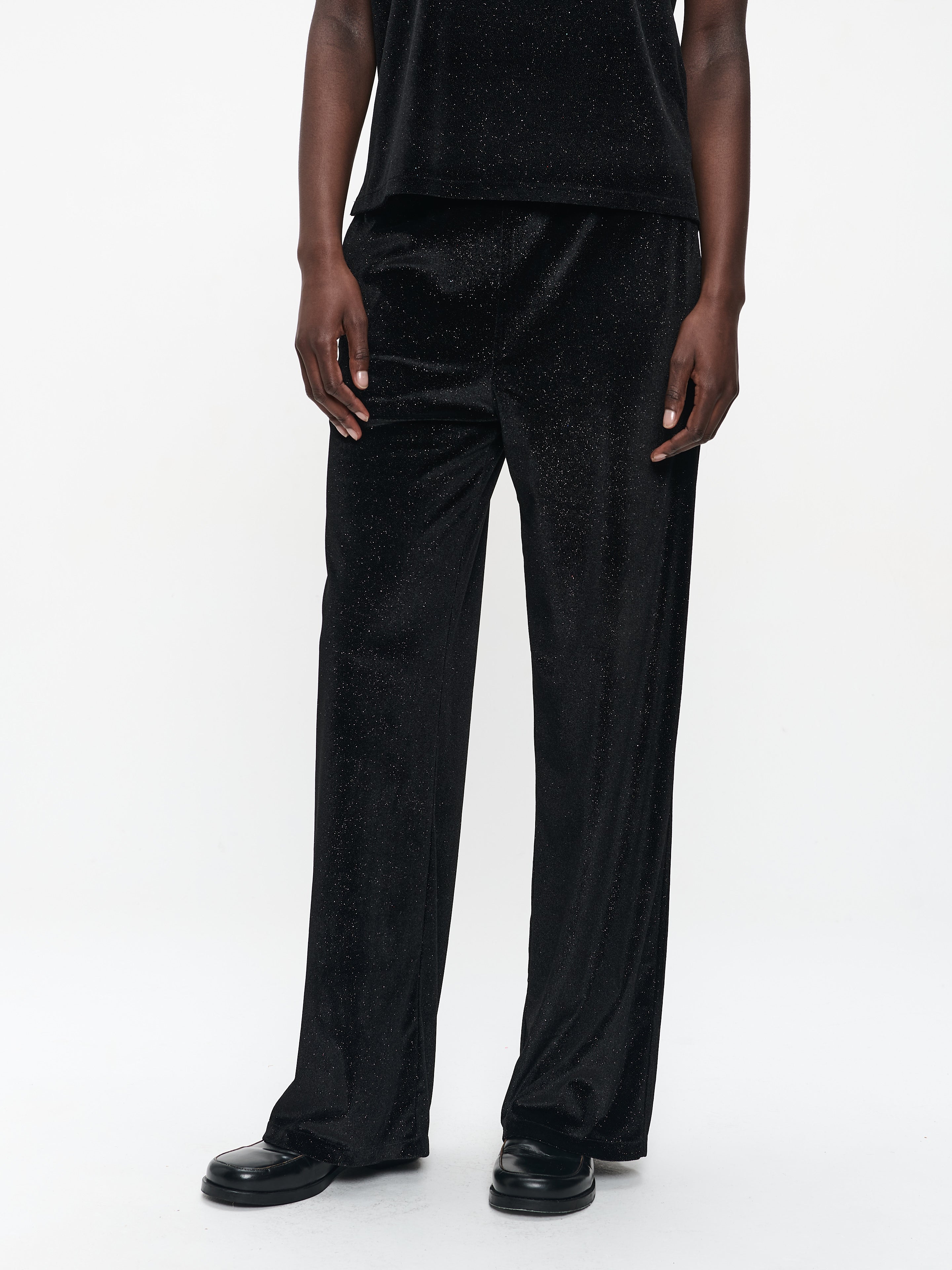 Die Simone Velvet Pants vereinen entspannte Eleganz mit moderner Leichtigkeit. Aus einem samtigen Stoff gefertigt, der jedem Outfit einen dezenten Glanz verleiht, überzeugen sie mit weitem Bein und elastischem Bund – ideal für stilvolle Alltagslooks oder elegante Abendauftritte.