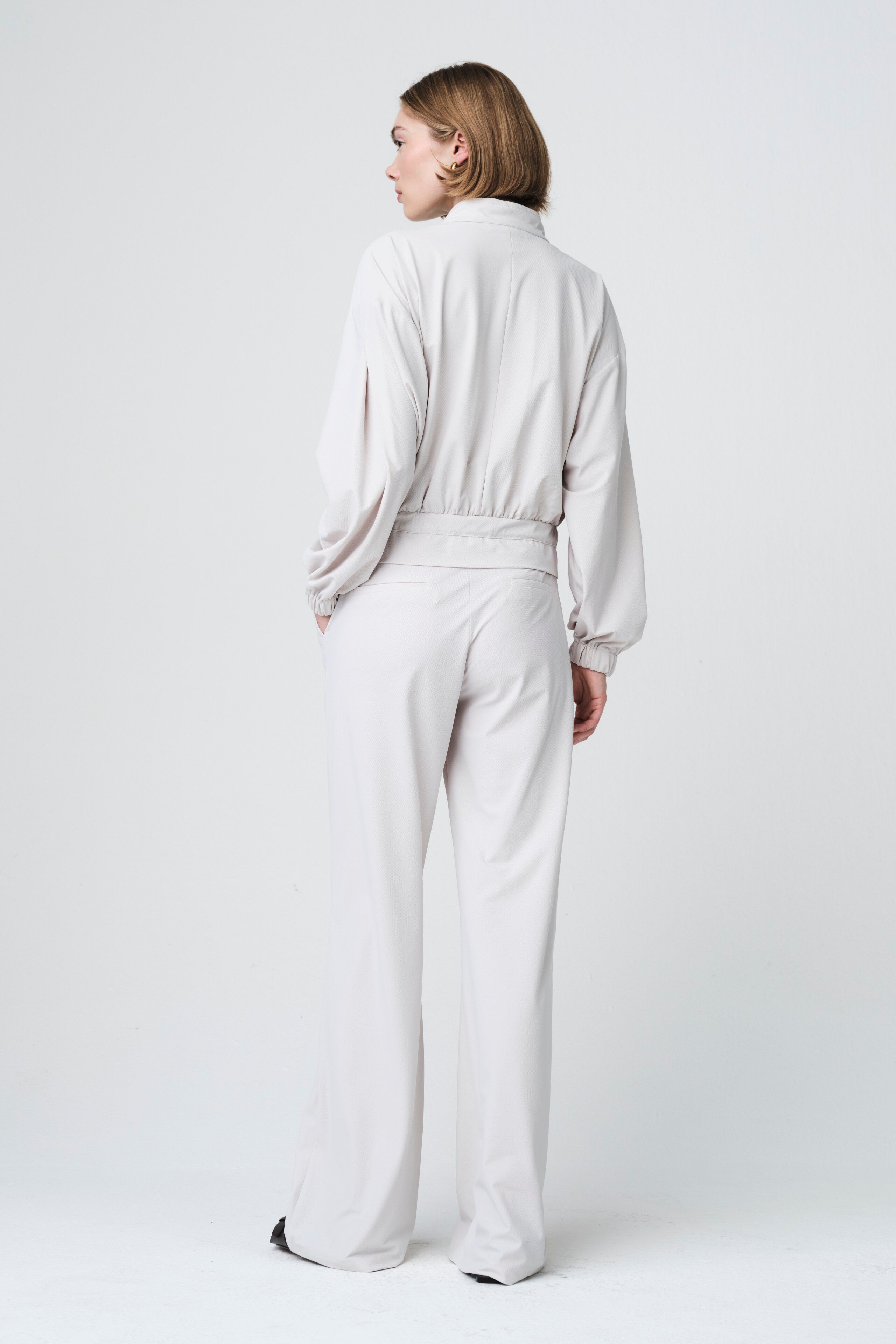 I pantaloni Yvette presentano una silhouette elegante e allungata, con una caduta fluida che valorizza il loro stile minimal. Realizzati nel nostro jersey tecnico, offrono comfort, morbidezza e una finitura pulita — perfetti sia per il quotidiano che per look più ricercati.